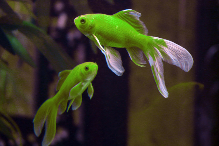 One fish two fish, goldfish, green fish. Some selfish fool has added blue food dye to the fish bowl, turning a once gold goldfish green.