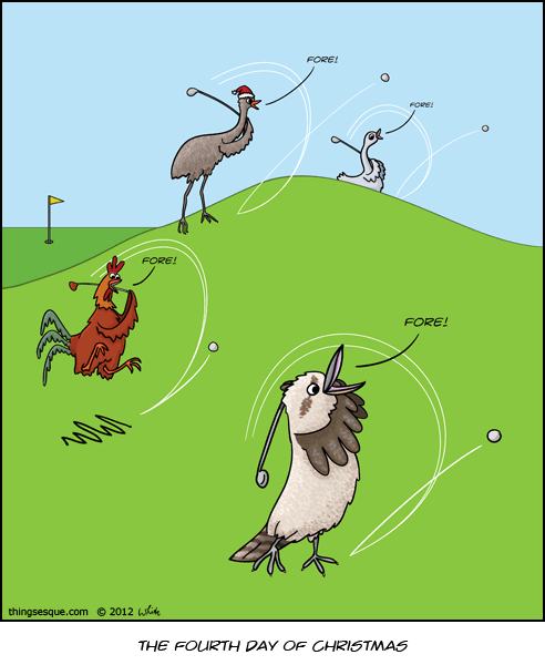 Typically most images for this verse of the carol comprise of three chooks standing around, intertwined with some Christmas decorations.