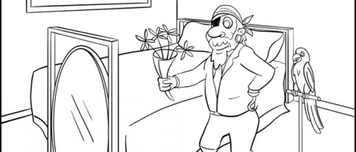 *It should be clarified that it’s the pirate preparing for his date and not the parrot.